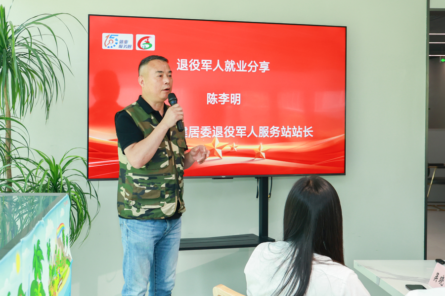 在创就业分享环节,退役军人就业代表、北蔡镇安建居委书记兼退役军人服务站站长陈李明,讲述了自己从军营到社区岗位的再就业历程,展现了退役军人扎根基层、服务群众的责任担当。上海必突壁网络科技有限公司创始人徐华梁则以创业者身份,分享了从军人到企业家的角色蜕变,诠释了退役军人在市场经济浪潮中勇毅前行的拼搏精神。两位的奋斗故事引发在场人员共鸣,激发了退役战友投身社会建设的热情。