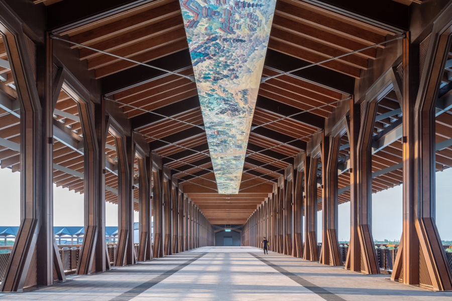 长新公司副总经理王永春表示,“三桥五馆”的格局既体现了中国传统空间形制和江南水乡文化,又蕴含了长三角三省一市向心汇聚、一体发展的空间意向。