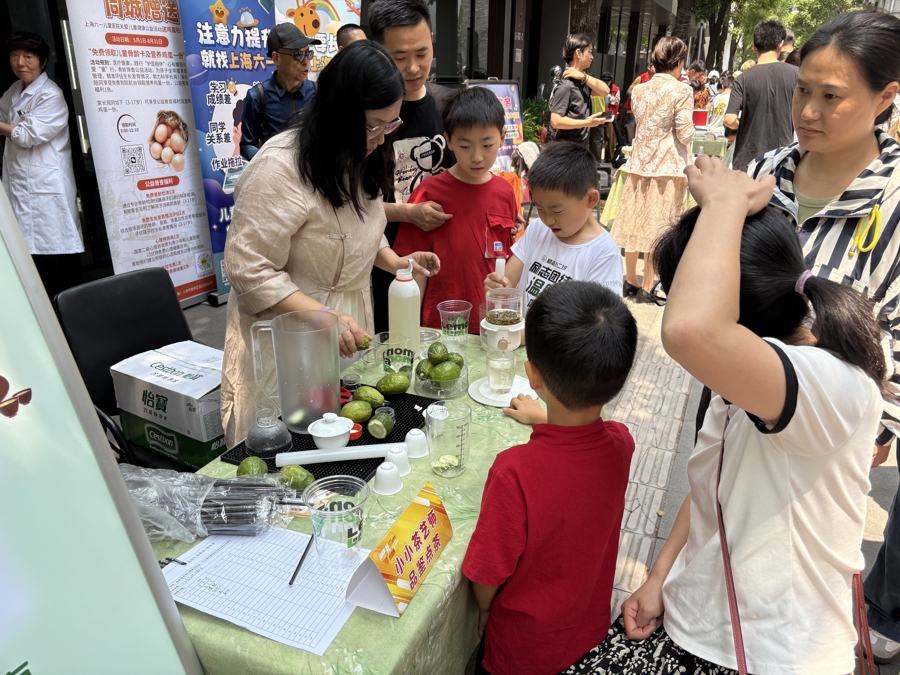 集市设有20余个摊位,涵盖儿童互动游戏、手工制作体验、义诊、便民服务、茶艺文化等,吸引众多亲子家庭前来“赶集”。上海电力大学电气微光志愿服务队带来的“电娃”小课堂颇受欢迎,孩子们跟着志愿者们完成电力实验,增强动手能力,激发对电力科学的兴趣。在传统手工艺摊位,香囊制作针线穿梭,散发着悠悠药香;在手工艺人的耐心指导下,大家跟着编织竹编龙舟风铃;“小小茶艺师”和“品鉴点茶”活动吸引茶文化爱好者驻足,在茶香中感受传统茶艺的魅力。