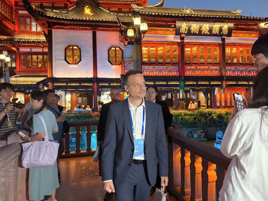 “历史与现代”,在谈话中,杜卡斯反复提到这样的感受。结束今天的论坛行程后,杜卡斯来到了上海市中心的豫园。透过豫园传统的飞檐,上海的摩天大楼一览无余,这让杜卡斯再次惊叹,“过去和未来,统一在同一片图景中,”他表示,“古老与现代交织,会给你们的市民带来充分的自信。”