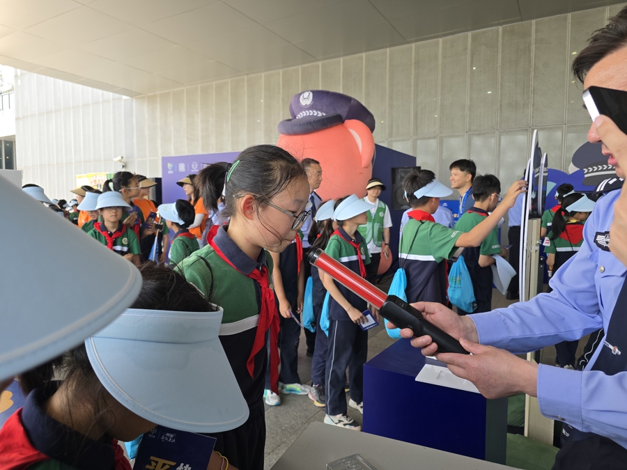 记者现场体验了AI模拟的十种类型的诈骗话术,确实有震撼的感觉,“沉浸式”体验能让人印象深刻。“现金交付陌生人,退3格”“火灾逃生时不乘坐电梯,进2格”。首场活动大受欢迎的“安全飞行棋”也增加了“慧眼识诈骗”“火场逃生”新板块,3块巨型飞行棋地垫前挤满了跃跃欲试的孩子们,集齐“通关”印章的孩子则能在现场兑换限定款的奖品,闵行公安的徽章和少年警队的笔袋、帽子成为热门“抢手货”,获得了孩子们的喜爱。