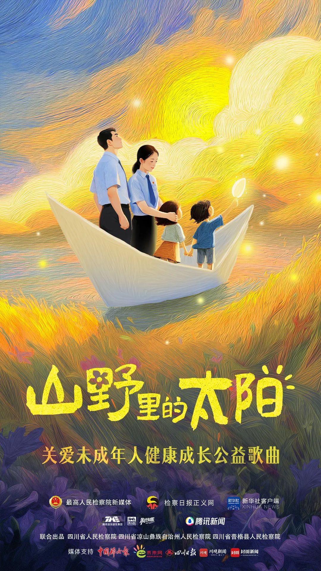 公益歌曲以儿童和未检检察官的双重视角展开叙事,展现了孩子们面临的孤独和成长困境,传递检察官对孩子美好祝愿。歌曲介绍了法治副校长、强制报告制度、督促监护令等未成年人检察工作,表达了检察机关协同多部门保护未成年人的决心,旨在呼吁全社会关注乡村地区儿童成长。