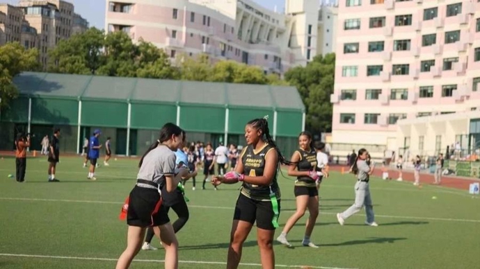 阳光直射绿茵场,欢呼声、呐喊声伴随着脚步与地面的摩擦声,一场特别的球赛在上海理工大学激烈较量——对阵的双方是中美两国青少年。“这是一场激烈又欢乐的比赛,我们赢了,在中国经历的一切都将成为一辈子难忘的记忆。”美国华盛顿州塔科马市林肯中学女子腰旗橄榄球队员拓维洛·太姆说。