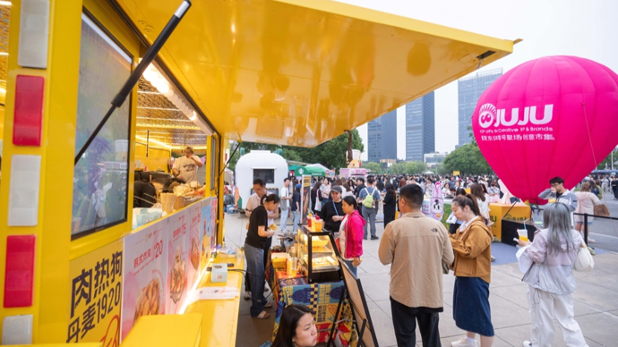 面部彩绘、花式编辫……10分钟后画风秒变,江小姐挥舞着荧光棒,跟朋友拉着手往隔壁东方体育中心走去。正逢端午假期,陈小春演唱会吸引了国内众多歌迷前来。从5月31日至6月2日,由久事体育东体分公司结合演唱会全力打造的OJUJU“零号聚场”首次与公众见面,这场为期三天的集市将多元潮流文化相融合,为市民呈现了一场别具一格的文旅消费体验。