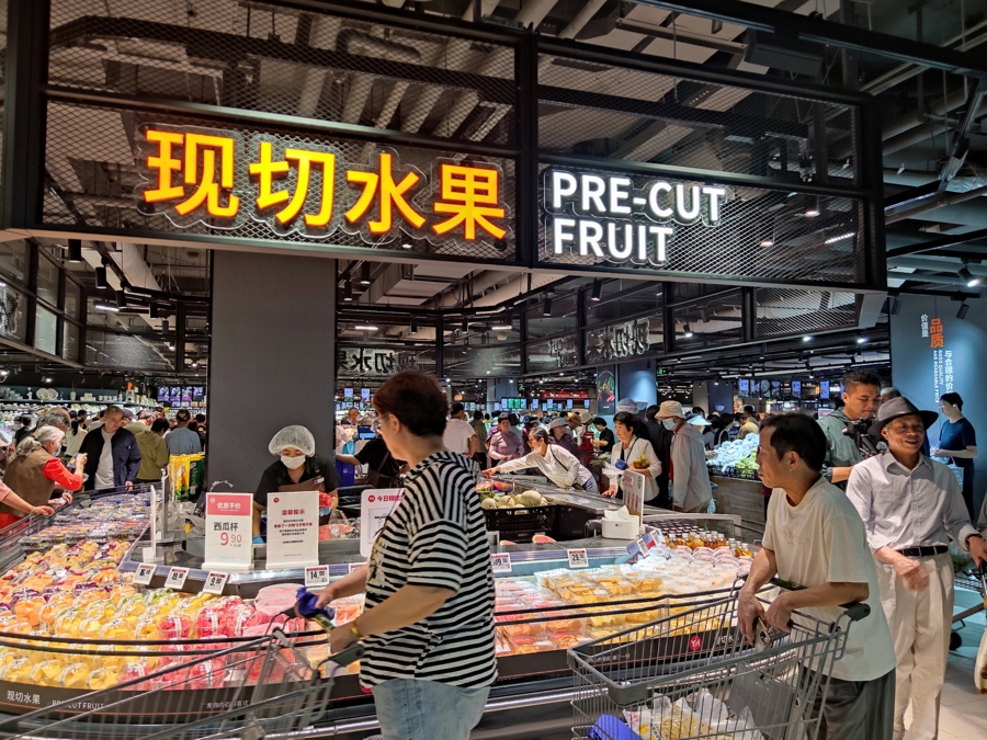 “爆改”中,永辉既复制了过去成熟的模式,也有不少新的优化。罗昌以动线优化举例,在前期的门店改造中,烘焙区、果切区和熟食区这几个网红区域“凑”在了一起,因为消费者集聚,很容易堵得水泄不通。因此在嘉定店的改造中,这几个区域被分开了,使动线更加合理。
