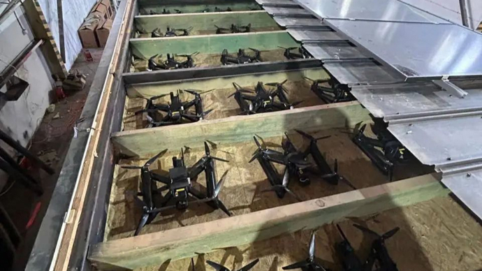 知情人士透露,该行动在后勤保障方面极具挑战性:先通过秘密渠道向俄境内输送FPV无人机,后转运移动木制伪装装置。在俄境内,无人机被隐藏于卡车装载的木质结构顶棚下,待命期间保持静默,最终通过远程激活实施打击。