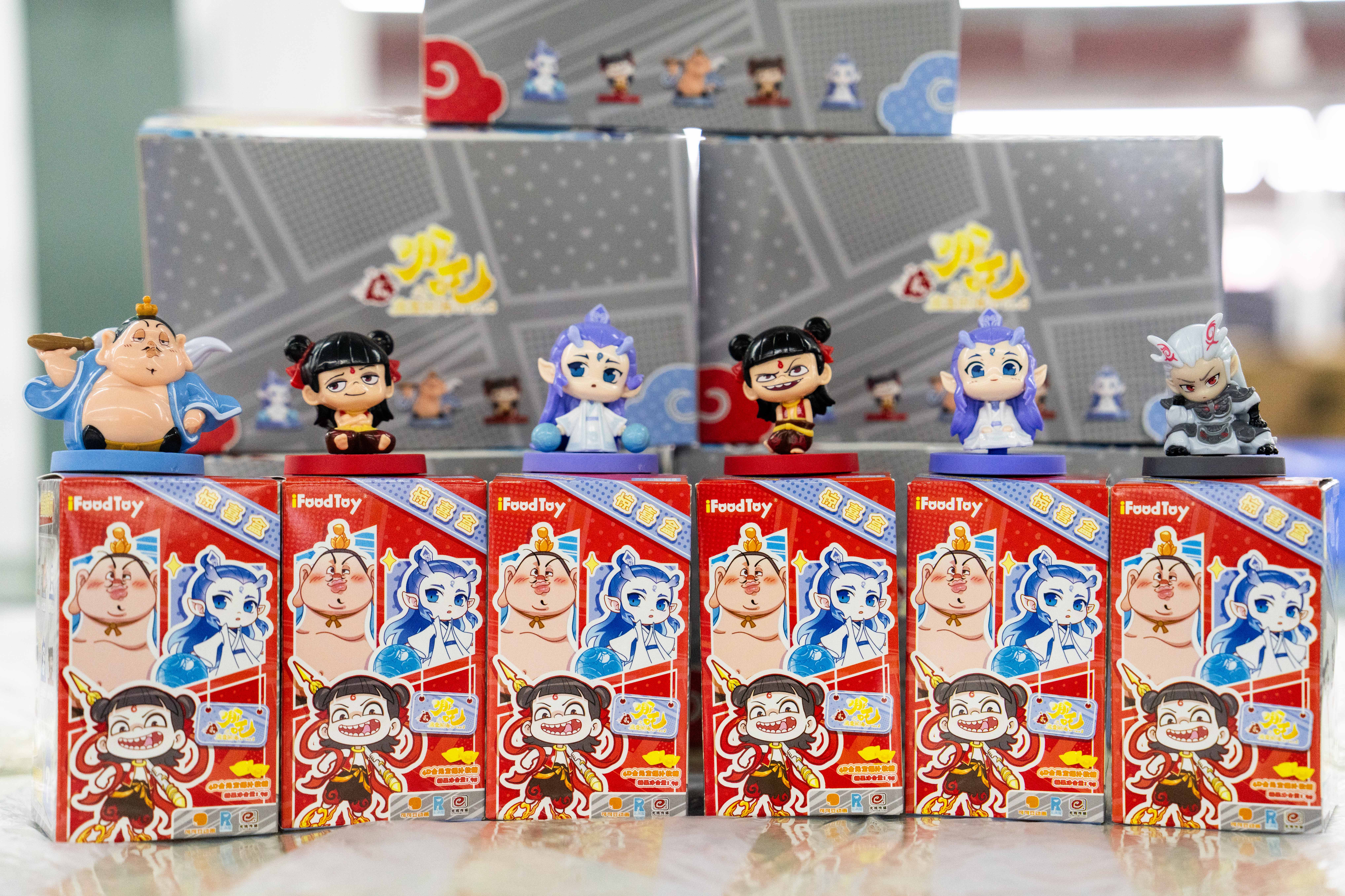 这是2月8日在位于湘潭综合保税区的湖南桑尼森迪玩具制造有限公司拍摄的“哪吒”系列周边玩具。新华社记者 陈思汗 摄