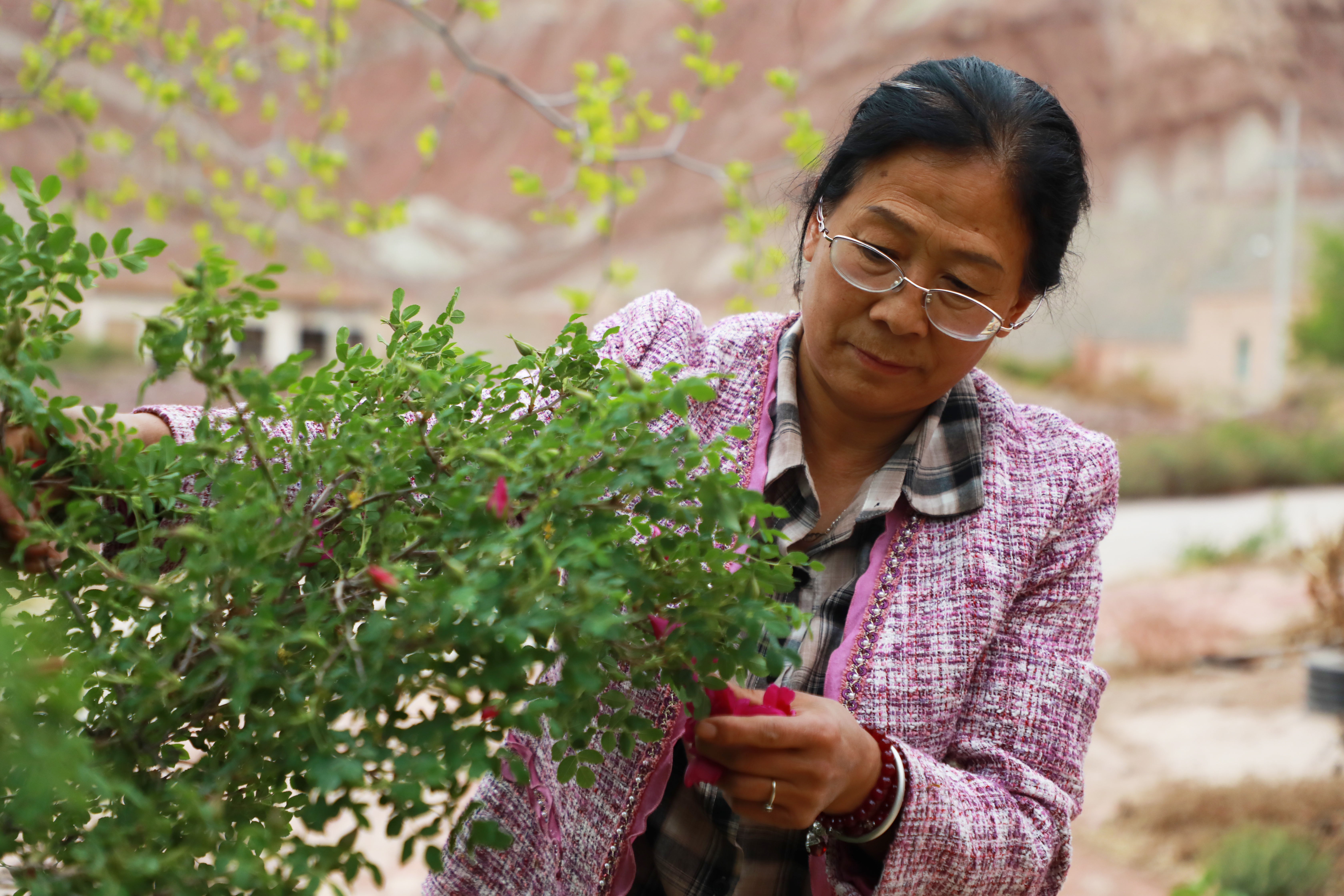 “苦水玫瑰浑身都是刺,小时候只觉得扎人。长大后才意识到,苦水玫瑰是大自然给予苦水镇的最好礼物。”从小就在玫瑰刺堆里闯大的把存礼说,那个时候,不管是开厂子的,还是种玫瑰的,大家都赚了不少钱。