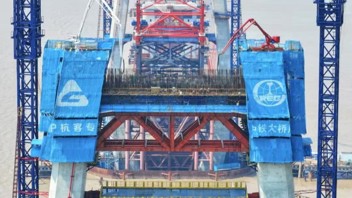 5月26日,世界最大跨度双塔双索面公铁两用无砟轨道斜拉桥——崇启公铁长江大桥4号主塔上横梁首层浇筑完成,未来将打通南通启东至上海崇明快速通道。同日,连接苏州、泰州、南通的张靖皋长江大桥南航道桥南主塔中横梁成功合龙。它有6项“世界之最”:南航道桥跨度2300米,是世界最大跨度悬索桥;南主塔高350米,为世界最高悬索桥索塔;拥有世界最长高强度主缆、最大地连墙锚碇基础、最长连续长度钢箱梁、最大位移量伸缩装置等纪录。