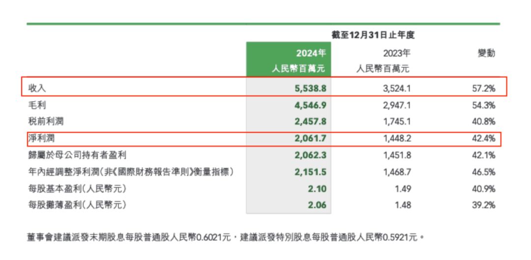 对比之下,巨子生物的营收达到55.39亿元,同比增长57.17%;净利润为20.62亿元,同比增长42.4%。