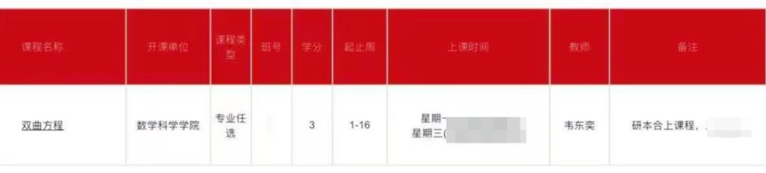 ▲韦东奕本学期有一门“双曲方程”的课程