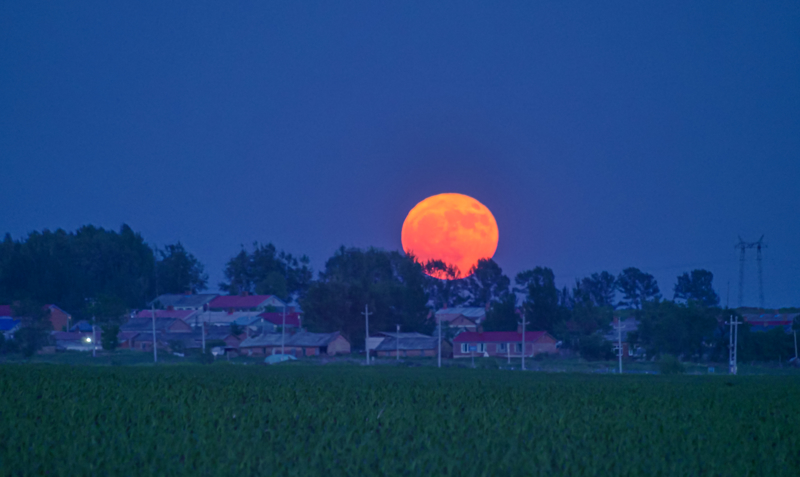 6月11日在黑龙江省佳木斯市汤原县鹤立镇拍摄的满月。6月11日,本年度“离你最近”的满月现身天宇。当日晚间,北半球的公众可看到一轮今年之中离地面最近的满月。
