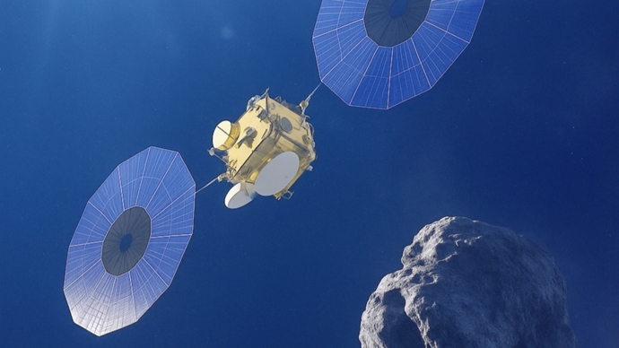 在飞往主带彗星311P的过程中,主探测器需要在浩瀚宇宙中保持精确导航和稳定的姿态控制,同时还需要不断优化能源管理,确保太阳翼始终能为各个系统提供充足电力。它配备了一对圆形太阳翼,单翼面积达17平方米,而直径仅约4.7米,这种设计能有效缩短太阳翼展开尺寸,降低传统长尺寸太阳翼在软着陆过程中的触地风险,极大提高了探测器在小行星着陆任务中的可靠性。同时,其光电转换效率高达34%,可在太阳能稀薄的远日点维持供电。