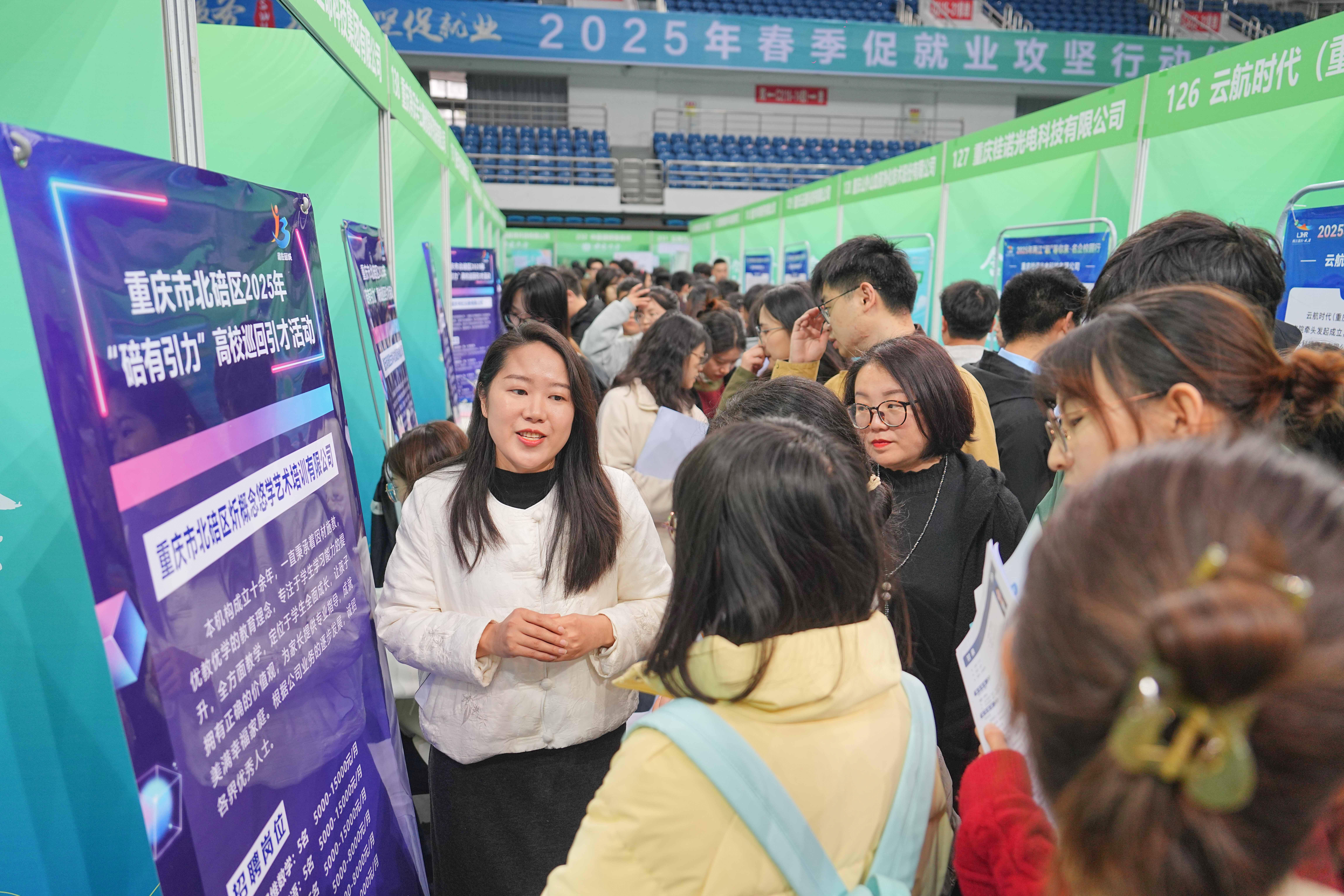 3月28日,西南大学应届毕业生在2025年春季促就业攻坚行动综合类双选会现场了解岗位信息。新华社发(秦廷富摄)
