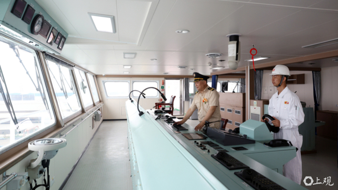 中波员工和行业人士观摩新船驾驶舱。