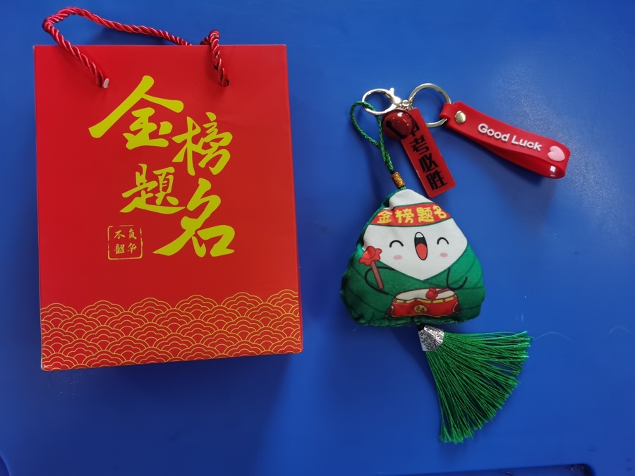 继光初级中学的考生们手拿祝福小礼物。