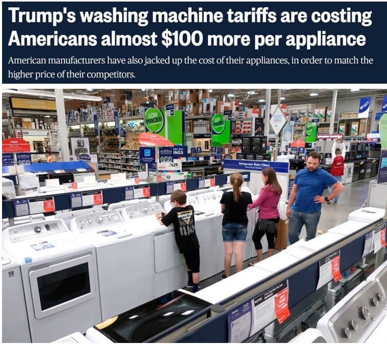 而根据美联储和芝加哥大学的测算,加征关税最终使一台普通洗衣机的价格上涨了近100美元。