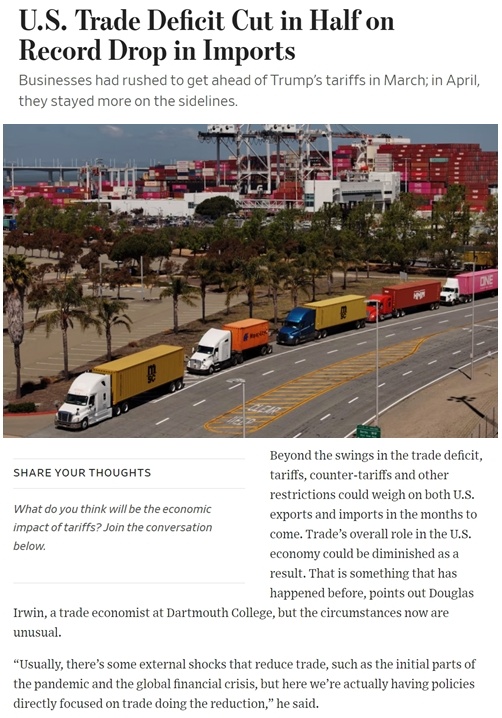 《华尔街日报》援引市场人士的分析称,关税、反关税和其他限制措施可能会在未来几个月拖累美国的进出口数据,贸易在美国经济中的整体作用可能会减弱。而这种情况以前只在新冠疫情初期和全球金融危机时出现过。