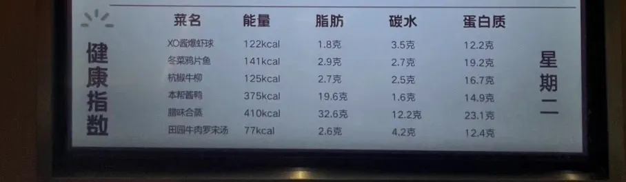 在食堂入口处的电子屏幕上,