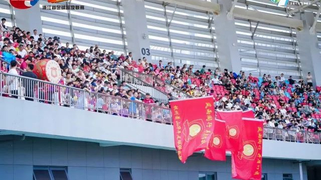 比赛开始后,双方助威团此起彼伏的呐喊声响彻球场。观众席上,参加萧山区镇街足球超级联赛的22支足球队都前来为主队萧山华丰队加油助威。