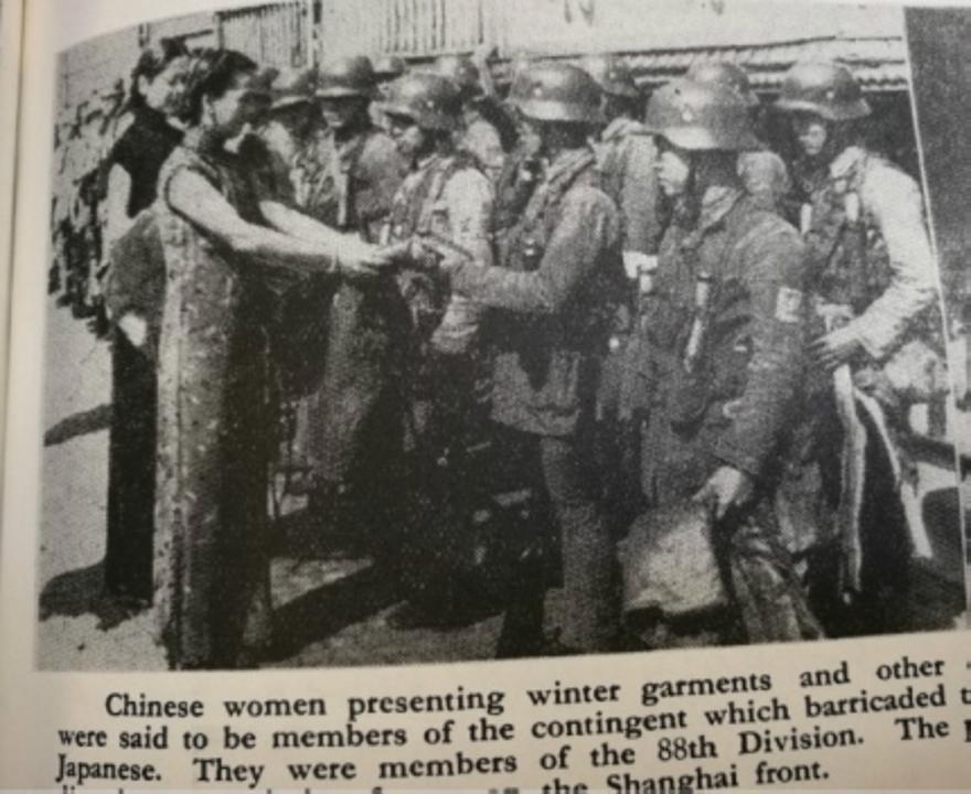 《密勒氏评论报》的主编立场偏近中方,对中国态度更为友好。在11月6日出版的图文里,记者注意到军民一心的细节,拍下了上海妇女向曾坚守四行仓库的第88师士兵呈递慰劳品的场景。