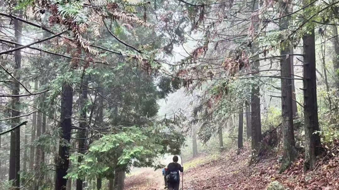 贝女士参加的宁波蜘蛛岭古道徒步活动全程大概10km,当日下了小雨,路途湿滑。