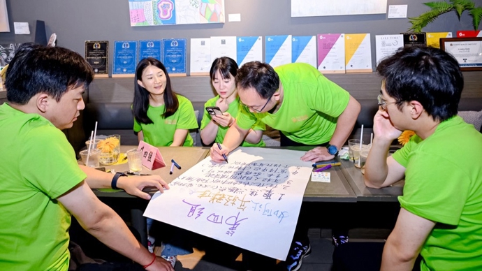 图为主理人们针对TOP4议题火速分组,组员们热烈讨论,脑力激荡,为痛点精准“开方”,从“独行者”到“共生力”,一个个创意十足、落地性强的“金点子”策略雏形火热出炉。