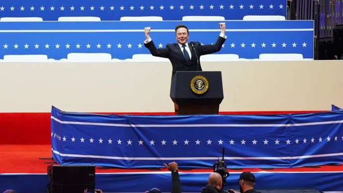 这是1月20日埃隆·马斯克在美国首都华盛顿第一资本体育馆讲话的资料照片。新华社记者吴晓凌摄