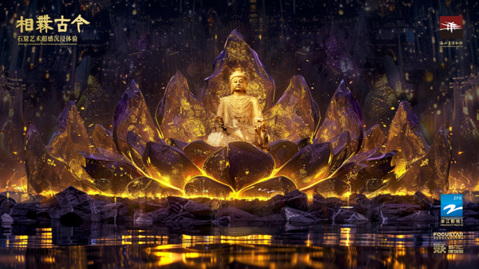 本次沉浸体验采用“实物+数字沉浸体验”方式演绎石窟艺术的东渐演变主题,全力呈现石窟艺术之美。全场沉浸体验内容覆盖犍陀罗艺术、克孜尔石窟、敦煌莫高窟、麦积山石窟、云冈石窟、龙门石窟、大足石刻等主题。观众无需远涉千里,即可置身于壮丽石窟群中,近距离感受石窟艺术的魅力。