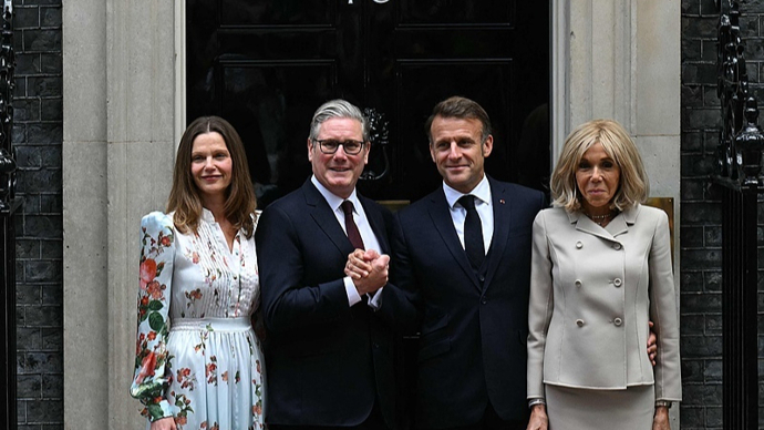 当地时间7月9日,法国总统马克龙在英国进行国事访问期间,与英国首相斯塔默在位于伦敦唐宁街10号的首相府会面。