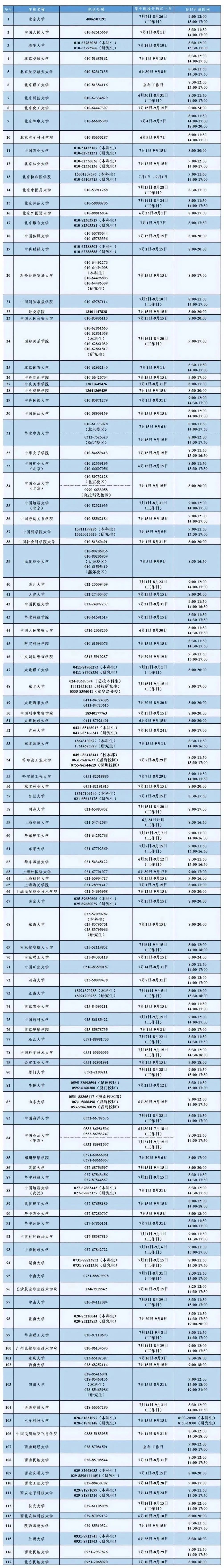 各省(自治区、直辖市)和中央部属高校同步开通热线电话,电话号码与开通时间见文后一览表。