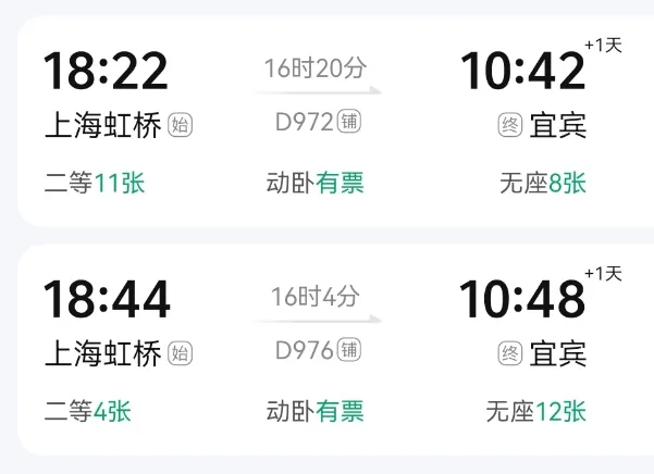 动卧票价来啦!