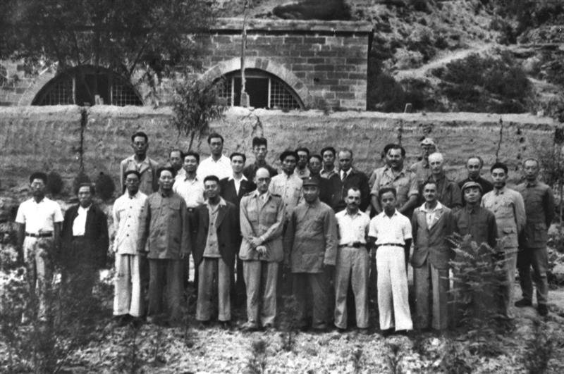 1944年6月,毛泽东(前左四)、朱德(前右五)等会见冲破国民党政府阻挠到延安访问的中外记者西北参观团成员爱泼斯坦、福尔曼、赵超构等 新华社发