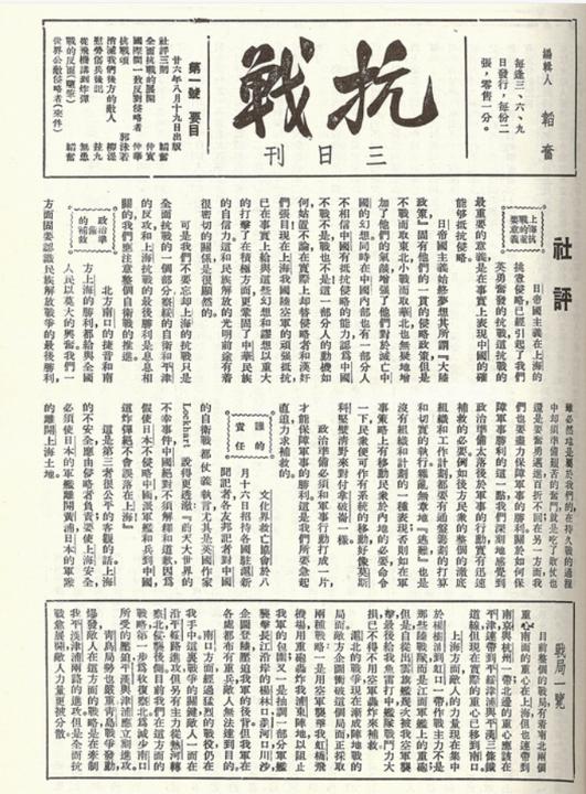 上海不间断地面向全国、全世界发出中国抗敌御侮的民族强音