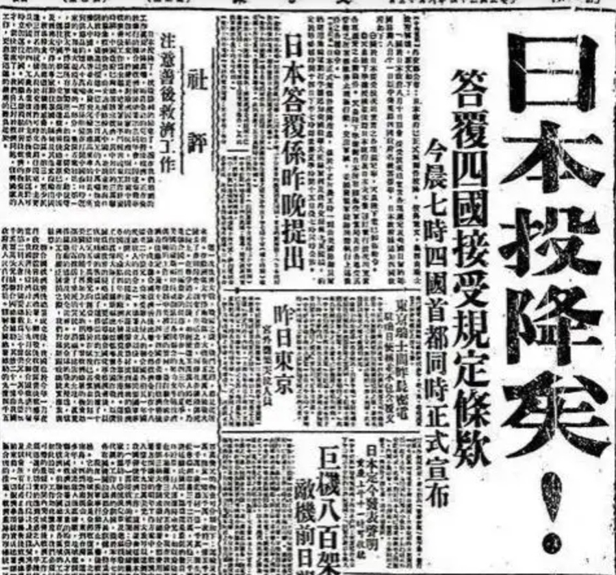 《大公报》用醒目的大字标题“日本投降矣!”报道了日本投降的消息