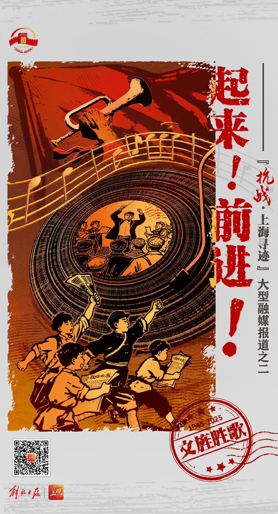 起来!前进!在中华民族最危险的时候,上海发出了抗日救亡的民族强音。为纪念中国人民抗日战争暨世界反法西斯战争胜利80周年,解放日报“抗战•上海寻迹”报道组兵分多路,从不同视角寻找上海抗战印迹。我们寻访的第二路,寻找当年那些鼓舞人心的文艺作品诞生之处,访问文化名人抗战期间在上海奔走的人生轨迹,回望上海民众在民族危亡之时万众一心的觉醒。