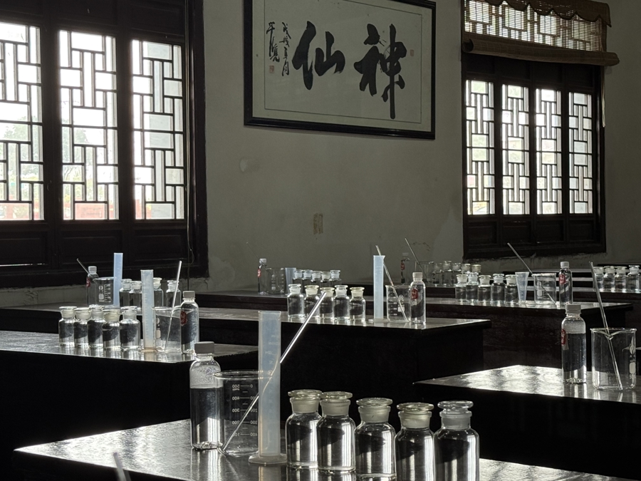 到神仙酒厂工业旅游,游客可现场体验白酒调配。沈思怡 摄