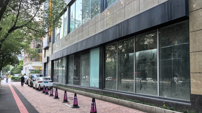 这块区域近徐家汇路侧是整块的玻璃幕墙,如果要开店,需要拆除其中的部分玻璃,改为可供进出的出入口。