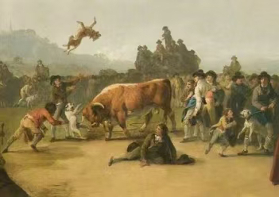 朱丽叶·凯撒·艾博森(Julius Caesar Ibbetson)所绘的《斗牛图》(“Bull Baiting”