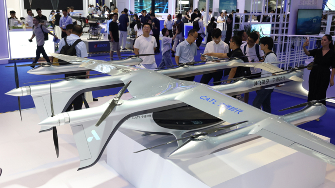 展会现场各种低空航空器吸引观众围观。