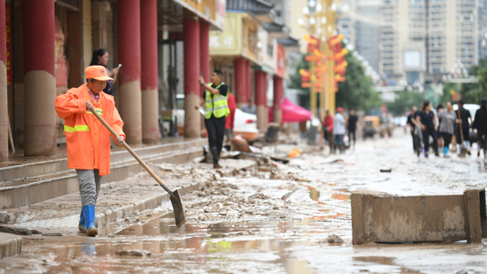 此前,吴起县防汛指挥部发布信息,7月25日该县受上游汛情及境内长时间强降雨影响,辖区内头道川、乱石头川及县城北洛河水势上涨迅猛,存在安全隐患。灾害发生后,该县广大干部职工迅速行动,走上街头开展淤泥清理、垃圾清运等灾后恢复工作。