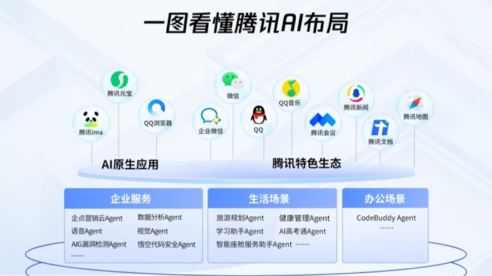 7月27日,在2025世界人工智能大会腾讯论坛上,腾讯重磅发布了混元3D世界模型、具身智能平台Tairos(钛螺丝)等AI最新成果,并带来了智能体开发平台等产品的全新升级,首次全面展示面向AI时代的产品应用全景图。这套“1+3+N”全景体系,以腾讯自研混元大模型为核心引擎,构建了涵盖平台能力与多元应用的完整架构,覆盖面向B、C端的智能体开发平台,面向机器人领域的腾讯具身智能开放平台,以及分布在多个行业场景中的丰富AI应用与智能体产品矩阵。通过这一体系,腾讯正加速推动AI从技术突破迈向场景落地,打造真正“好用的AI”。