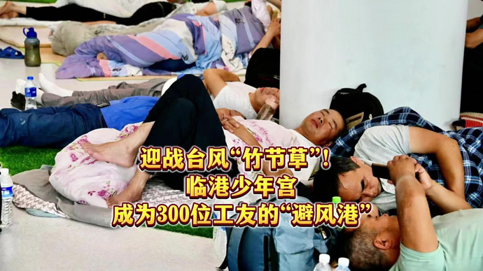 原标题:《文汇视讯|迎战台风“竹节草”,临港少年宫成为300位工友的“避风港”》