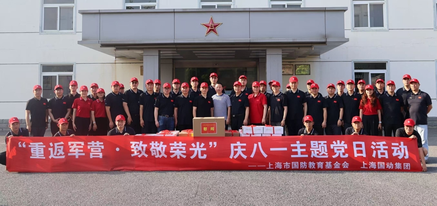 8月1日下午,上海市国防教育基金会联合国动集团退役军人走进驻沪海军某部开展“重返军营、致敬荣光”庆八一主题党日活动。
