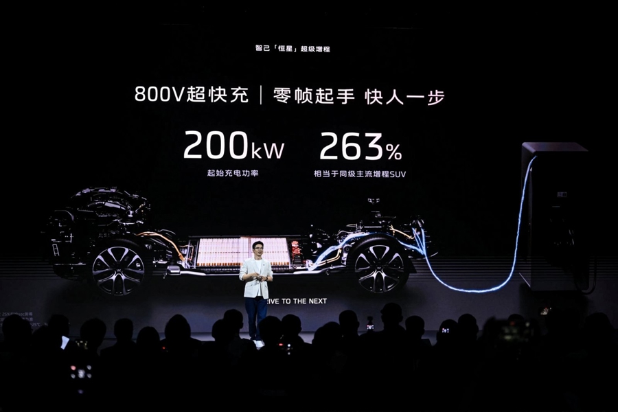 作为最新的超级增程技术,“恒星”在技术上有三个关键突破:第一,搭载行业最大66kWh超级骁遥MAX增程电池,拥有超大电量和超强储备功率;第二,搭载800V超级快充平台,充电15分钟可增加纯电续航310km,有效解决补能问题;第三, CLTC工况下纯电续航突破450+km,电车体验超1500+km,创造行业记录。