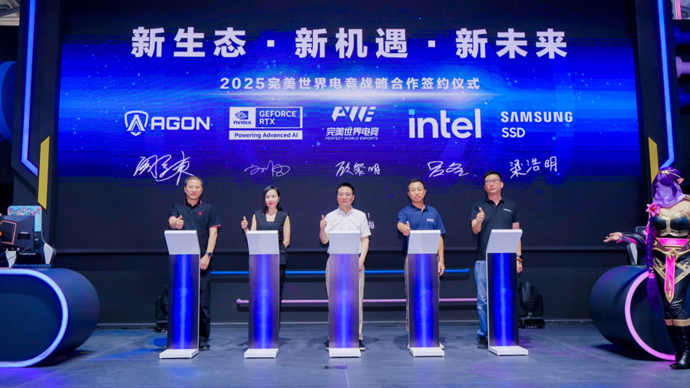 从2019年的第九届DOTA2国际邀请赛(TI9),到2020年的英雄联盟全球总决赛(S10)、2024年的反恐精英世界锦标赛(CS上海Major),再到昨天的全球电竞大会上,2026无畏契约全球冠军赛宣布落地上海,电竞产业正在上海这片沃土迅速生根、茁壮成长。电子竞技的发展离不开硬件技术的加持,近日,正在举办的ChinaJoy展会现场,完美世界携手英伟达(NVIDIA)、英特尔、爱攻(AGON)、三星品牌存储四大国际硬件厂商,成立完美电竞合作伙伴联盟,共拓电竞产业生态圈。