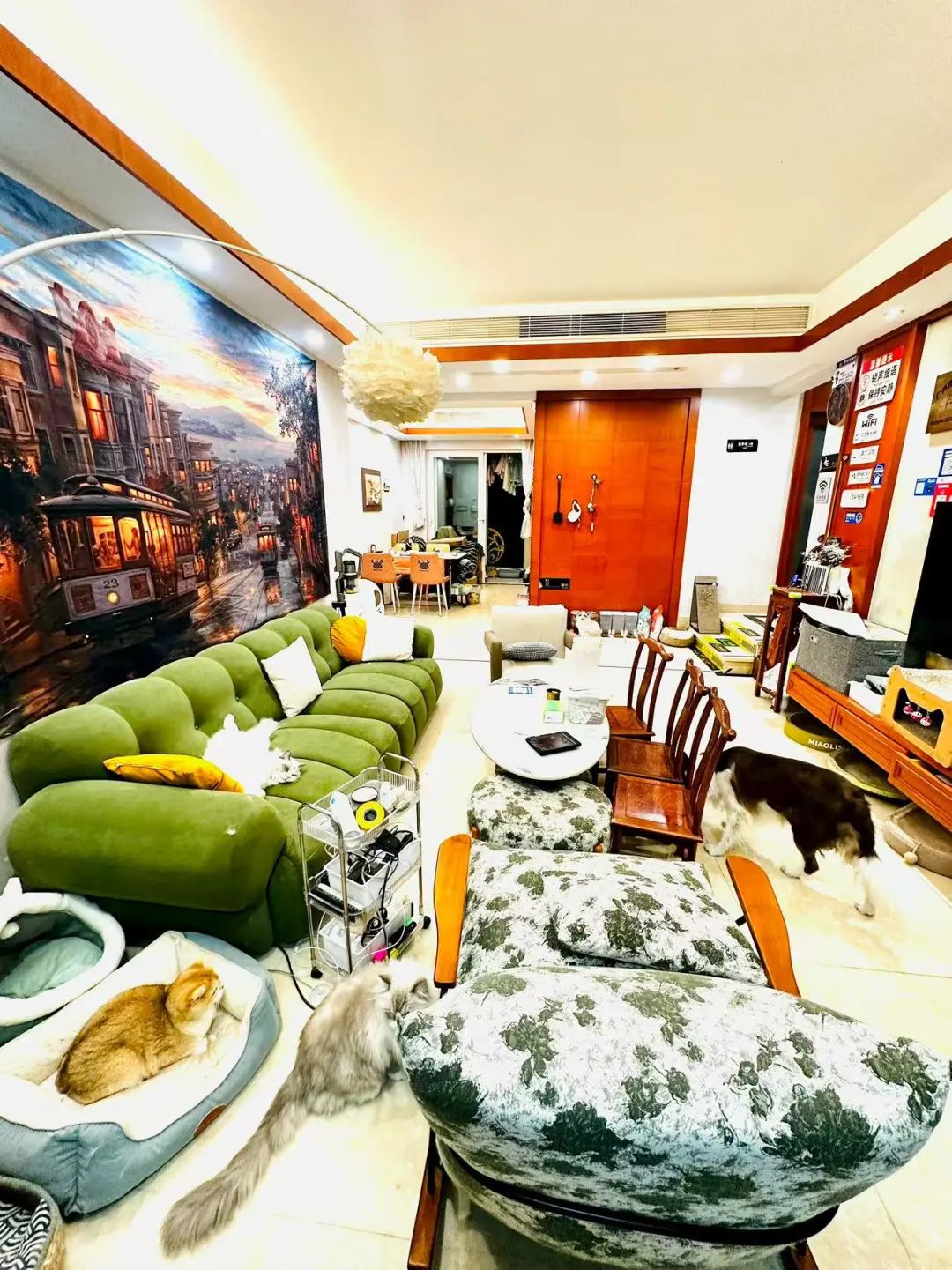 23年年底,许雁州便将自己在番禺南浦的三室两厅,改造成了有猫咪和狗狗的民宿。