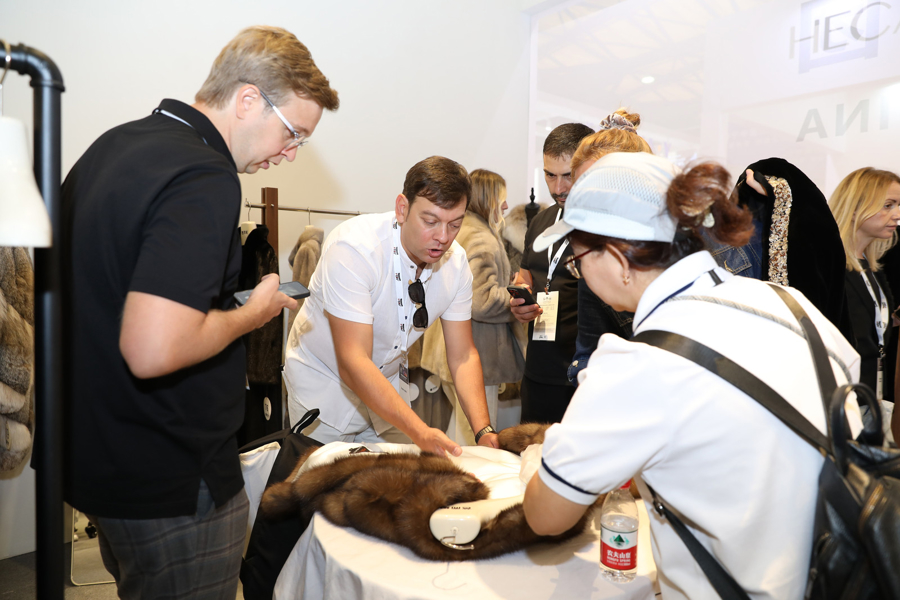 皮衣裘装展区:国际品牌Dorota、Saga furs与国内头部品牌雪豹、KC、依奴珈、冰妃天使等联袂登场,带来的皮衣裘装均采用优质皮革原料,融合精湛手工工艺与前沿设计理念,既有高端质感又具时尚格调,成为展厅内的“视觉焦点”,引得观众频频驻足。
