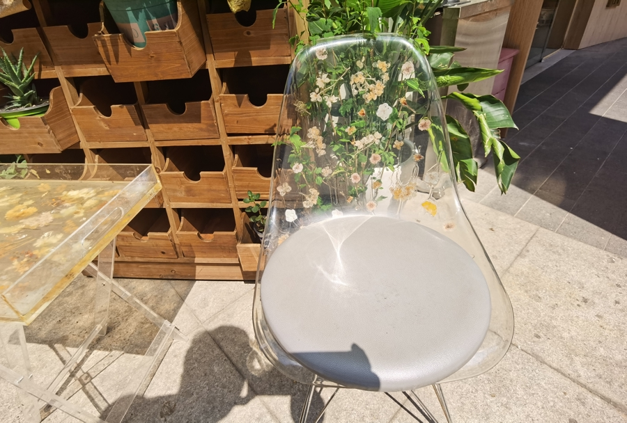 居民们用干花和落叶美化了公共座椅。 陈玺撼摄