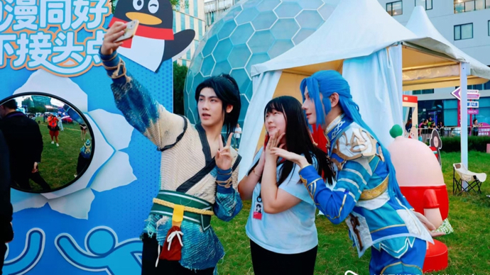 大会期间,主会场外的缤纷广场向公众开放,并与杨浦区“年轻人社区”大学路联动,联袂哔哩哔哩、小红书、小宇宙App等头部视听平台呈现“众有引力”创作者嘉年华